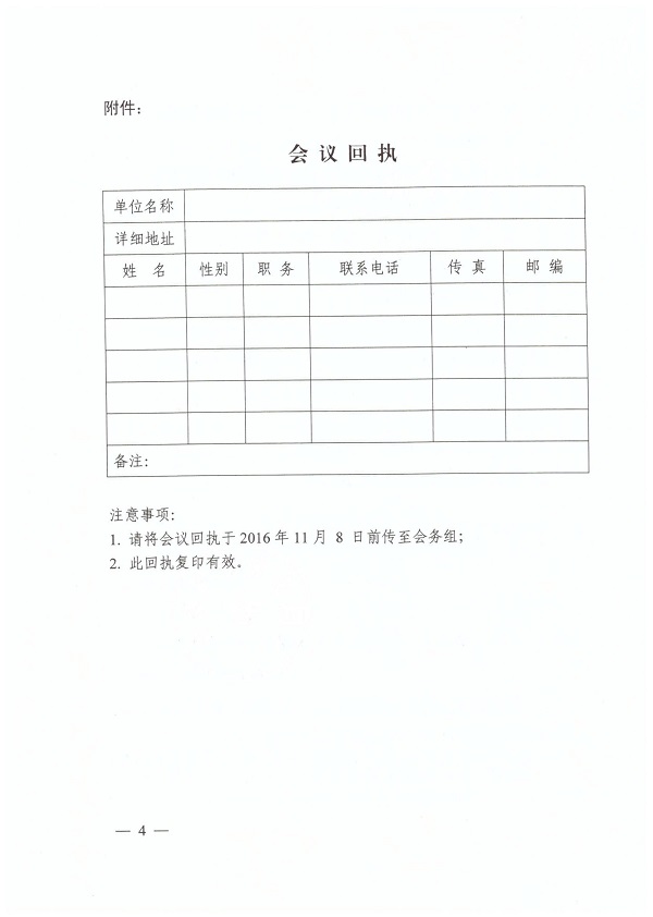 4.請(qǐng)于1 1月8日前將參會(huì)回執(zhí)(附件)郵寄或傳真至?xí)?wù)組。